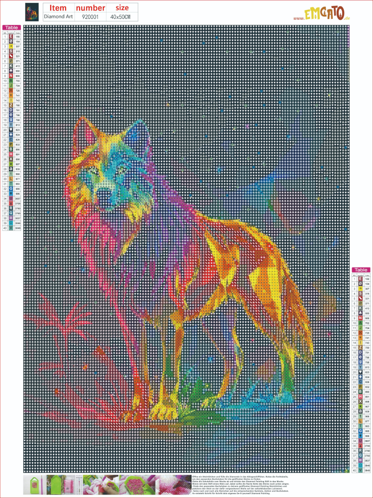 - Symbole und Farben: Die Leinwand ist mit Symbolen bedruckt, die den Farben der Diamanten entsprechen. Ähnlich wie bei Malen nach Zahlen platziert man die farbigen Steine auf den entsprechenden Symbolfeldern.