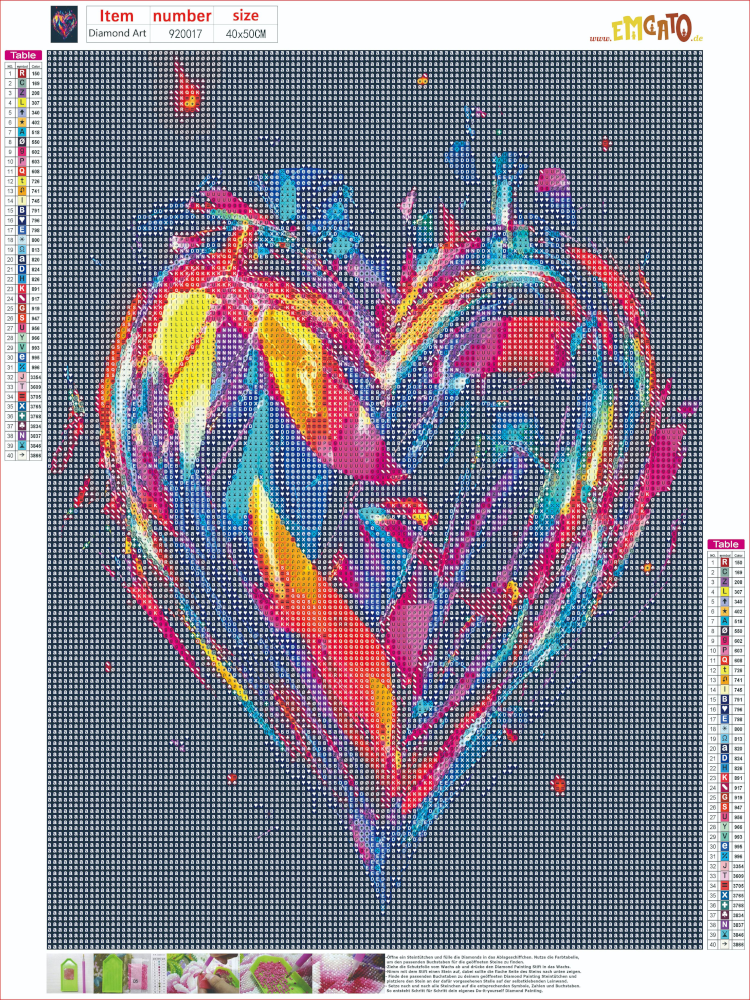 - Symbole und Farben: Die Leinwand ist mit Symbolen bedruckt, die den Farben der Diamanten entsprechen. Ähnlich wie bei Malen nach Zahlen platziert man die farbigen Steine auf den entsprechenden Symbolfeldern.