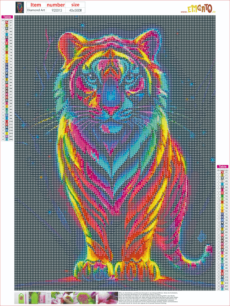 • Symbole und Farben: Die Leinwand ist mit Symbolen bedruckt, die den Farben der Diamanten entsprechen. Ähnlich wie bei Malen nach Zahlen platziert man die farbigen Steine auf den entsprechenden Symbolfeldern.